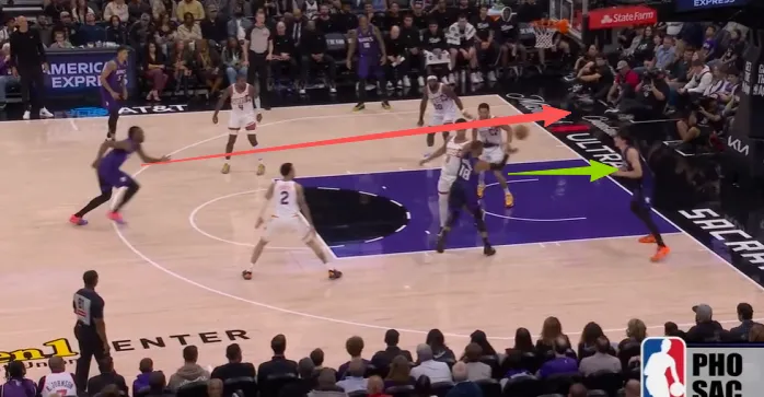 迂回至三分线后,趁防守阵型混乱立即启动突破直杀篮下,